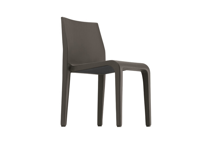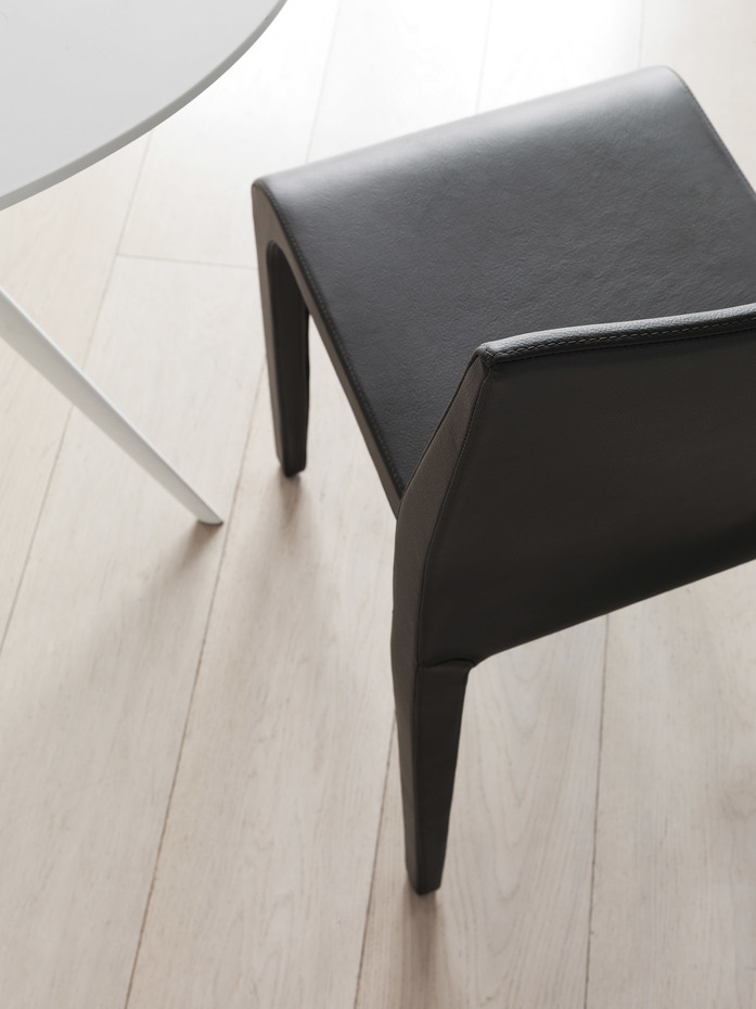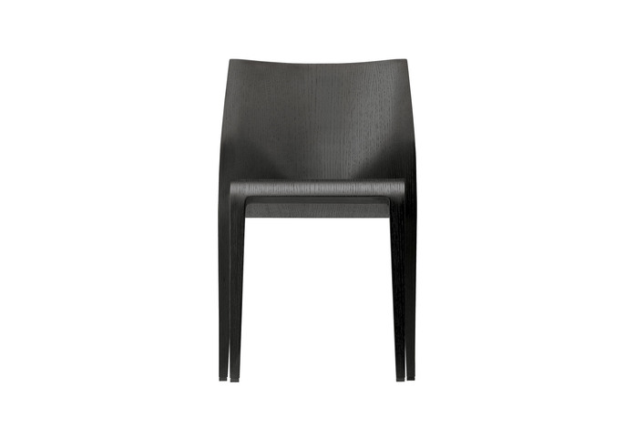Stapelstuhl mit Struktur aus massivem Ahorn oder Esche. Ahorn furniert oder Eiche furniert oder Nussbaum. Innenfüllung aus eingespritztem Polyurethan. Ausführung in lackiertem Eichenfurnier in verschiedenen Farben. LEATHER: Bezug aus Kunstleder oder Leder Pelle Frau® mit Soft-Polyurethanschaum.