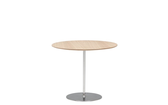 Tischsystem für runde oder quadratische Tischplatten und zentrale Fußgestelle mit verschiedenen Höhen und Durchmessern. Dies macht es sowohl für den privaten Bereich wie auch für öffentliche Einrichtungen geeignet. Je nach Blickwinkel verleiht das ovale Profil dem Tisch eine eigene Dynamik. Das Zusammentreffen mit dem Fußgestell aus Spritzaluminium leistet die formale Synthese. Nach einer einzigartigen Endbearbeitung ist ein Möbelstück von nachdrücklicher, eleganter Schlichtheit entstanden.