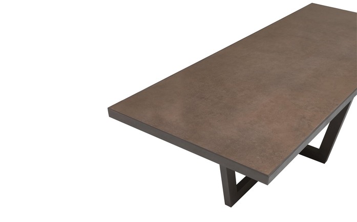 Die Kollektion Terra besteht aus zwei Beistell- und Esstischversionen. Der Beistelltisch wird mit einem kreuzförmigen Rahmen aus EPL5-behandeltem Stahl angeboten, der in der Farbe Terrabraun erhältlich ist. Die Tischplatte ist aus Schiefer. Wenn Freunde und die Familie sich an einem großen Tisch versammeln, verdient dies ein edles und bezüglich der Proportionen und Materialien großzügiges Möbelstück. Der Entwurf des Esstischs Terra besteht aus einem Rahmen aus EPL5-behandeltem Stahl der Farbe Terrabraun und einer großen Tischplatte, die in zwei Ausführungen erhältlich ist: in Massivholz Ecolignus® oder dekorativer Keramik in den Farben Sandgrau, Steingrau oder Terrabraun. Angeboten wird die Größe 2500 x 1000 mm /98,50 x 39,50 in.