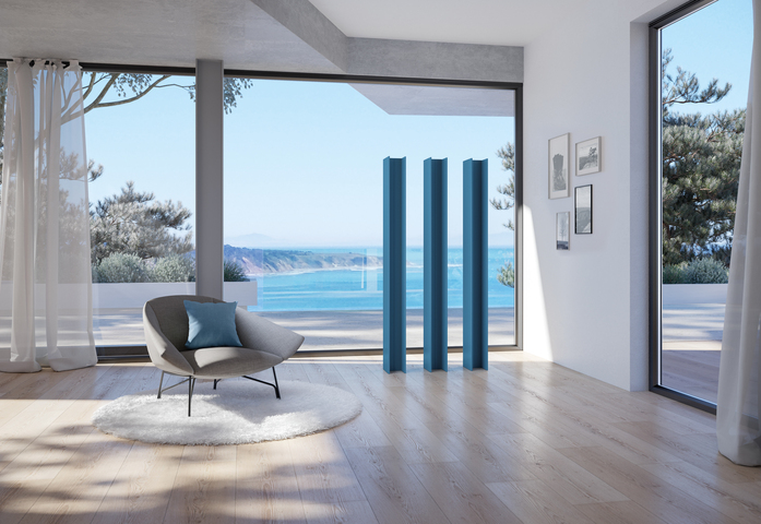 Feine und schlanke Umrisse, klare und bestimmte Linien, glatte und kompakte Oberflächen, die bekannteste T-förmige „Wärmekollektion“ öffnet sich einer neuen Gestaltungskreativität und wird zu einem selbsttragenden Element: T Tower ist der erste von Antrax IT entwickelte freistehende Heizkörper. Der Wärmekörper löst sich von der traditionellen Wandpositionierung und wird zu einem richtigen Einrichtungselement, das außergewöhnlich vielseitig ist und ästhetische Anforderungen, Wärmeleistung und Energieersparnis vereinen kann. Der aus einem Aluminiumprofil hergestellte T Tower wurde zur Wärmeabgabe sowohl im elektrischen Betrieb als auch in der Warmwasserausführung konzipiert. Er ist in einer Größe von 170x14x22 cm verfügbar und die elektrische Version verfügt über einen speziellen runden Sockel aus satiniertem Edelstahl.