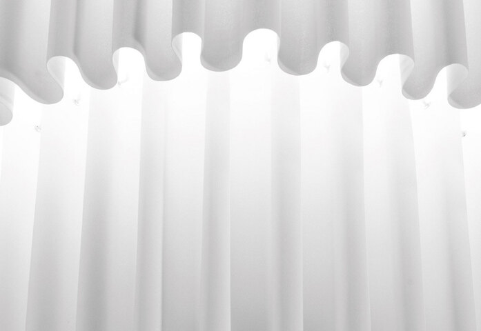 Leuchtenkollektion, mit Lampenschirm aus einem hängenden Stoff, zweilagiger, feuerfester TREVIRA® CS-Stoff. Außen netzförmig schwarz und innen, nach Wahl, in folgenden Farbtönen: orange, rot, pinkfarben, dunkelbraun, blau, hellblau, hellgrün, hellgrau, neutralweiß. Auch als farbiger, einlagiger Stoff, ohne schwarzes Netz erhältlich. Umfangreiche Auswahl Produkten mit bis zu 150 cm Durchmesser. Lichtquelle: Fluoreszenz- oder Halogenleuchtmittel, letztere auch in Kombination mit zusätzlichen RGB LED für große Hängeleuchten.