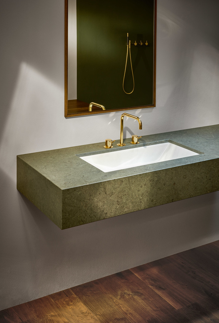Im Hotel- und Objektbau und bei privaten Bauvorhaben sind Unterbau-Waschtische immer dann erste Wahl, wenn elegante Waschplätze entstehen sollen, die viel Abstellfläche für Bad-Accessoires bieten und sehr leicht zu reinigen sind. Obwohl er vom Charakter her eigentlich die Diva des Waschplatzes ist, nimmt sich der Waschtisch in dieser Konstellation weitgehend zurück – zugunsten der Raumarchitektur und der anderen Protagonisten wie Waschtischplatte, Unterbaumöbel oder Armatur.