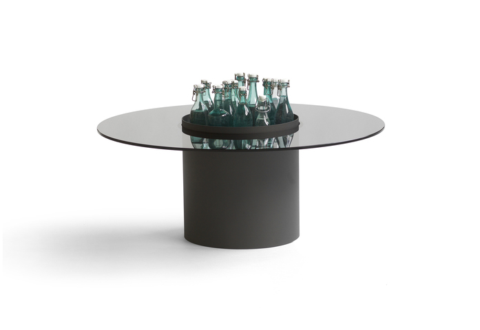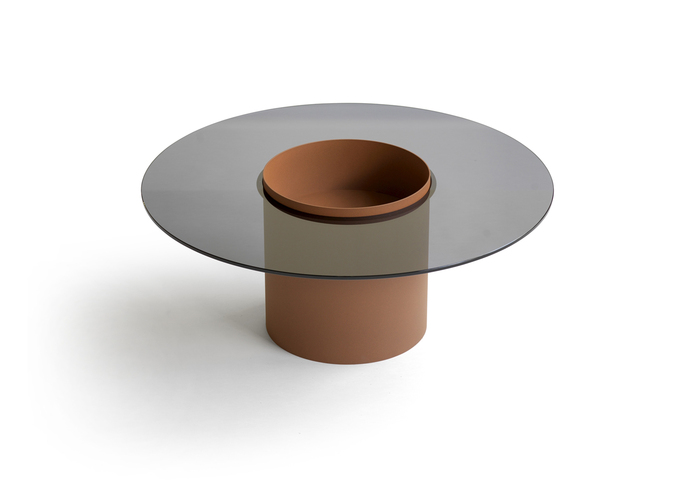 The cylinder that pierces through the glass table top is just waiting for some flowers, snacks, wine bottles, toys or that little touch that brings the design together. Bucket longs to be the centre of attention. Not just a table, but a design piece that constantly changes character. Just look at the contrast between the rounded or gently curved square table top and the cylindrical base available in earthy varnishes inspired by sand, terracotta, anthracite and clay. Even more colours are available.