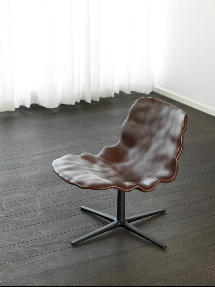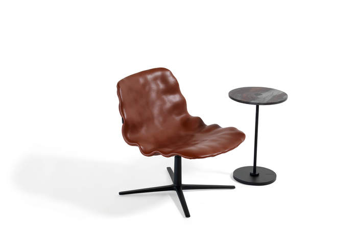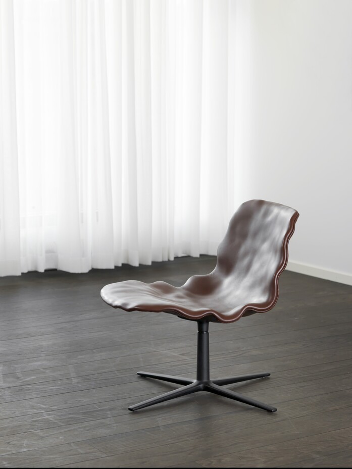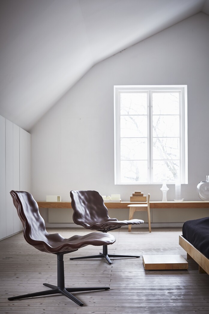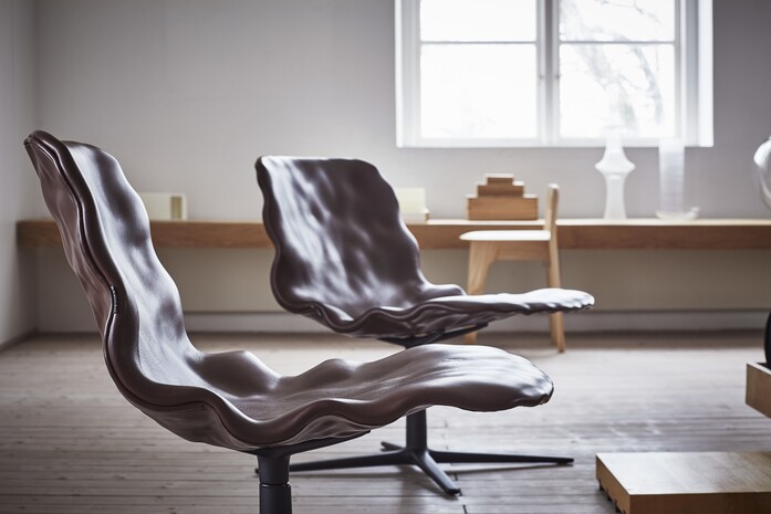 From a distance, the new Dent easy chair looks like it’s sculpted in clay. When you sit on it, it’s all soft, enveloping leather. The new addition to the Dent family by o4i (office for ideas), keeps the original three-dimensional surface in ordinary veneer, but now with a large generous ”dressed” seat shell fixed on a swivel frame. “We have stretched the curvature even more,” says Henrik Kjellberg, who together with Jon Lindström designed the original Dent chair in 2013, “and it works perfectly!”