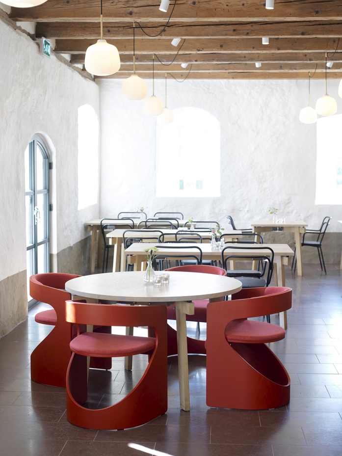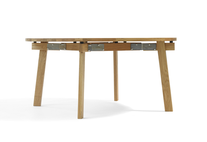 An “unlimited” possibility table-range, for big or small tabletops of almost any size or shape. Base in solid stave-glued ash wood. The pedestal base pillar is 110x110 mm thick, and is available in two sizes of the lacquered steel footplate. Table top of solid stave-glued ash. Various finishes of stained colours or natural lacquered.