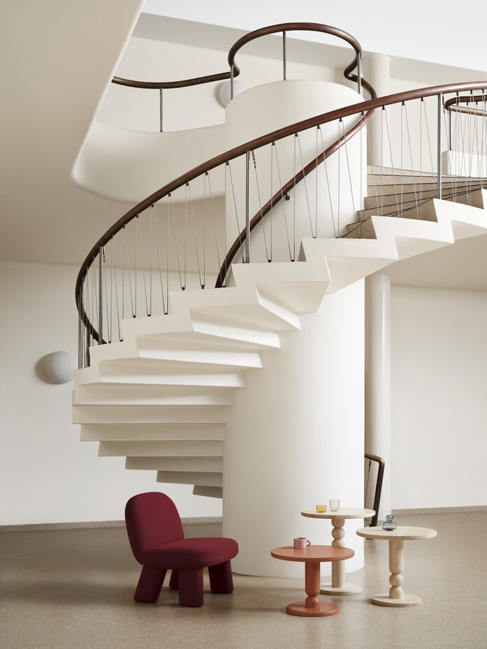 Turn is all made in massive oak or ash with a turned foot that welcomes decoration back into the design world, it could even be seen as a remembrance of decorative as well as baroque art and other historic styles relegated to history by the modernist movement. Turn is as content in the hybrid workspace as in a private home, and will easily reconfigure any space highlighting objects and bring about social interactions among people. Being made all in wood, with a shaft of steel for enhanced stability, Turn display a natural feel as well as going hand in hand with White's aim for a circular economy.