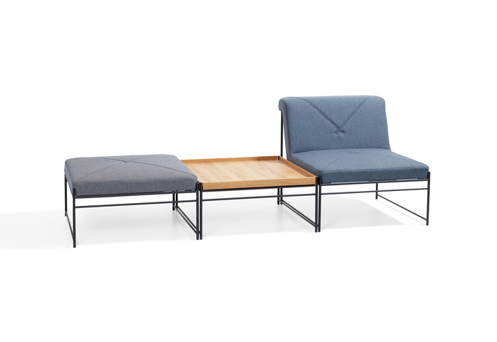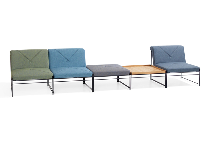 Unit is based on two key characteristics to adjust to different architectural spaces. The first is that it gives a light impression. With its thin seat upholstery held by a frame configured in horizontal and vertical lines, Unit exudes the impression that it is floating above the floor.