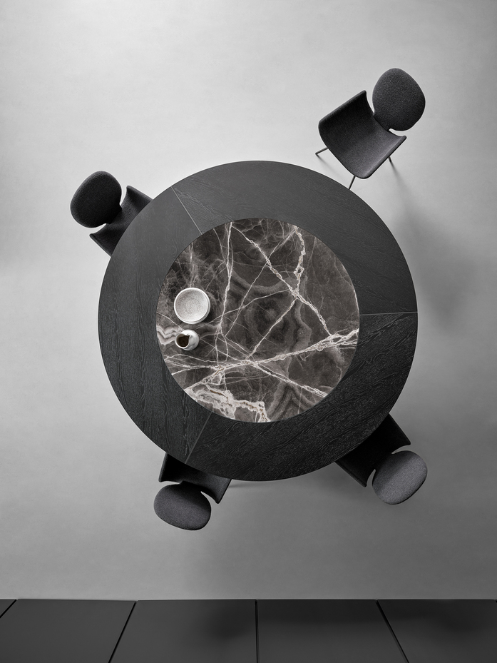 Zusammen mit Bonaldo hat Alain Gilles den "Louver Table" entworfen, einen Esstisch, den der venezianische Hersteller kreiert hat, um die Faszination edler Materialien zu betonen.