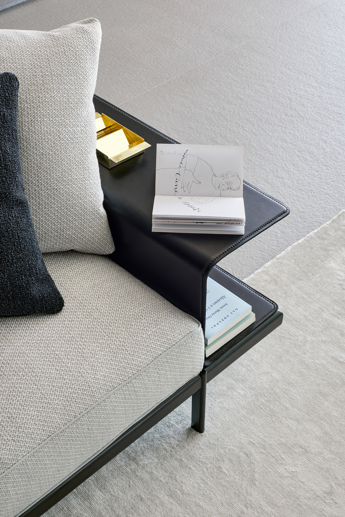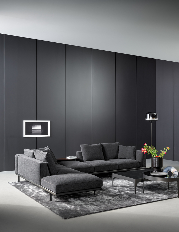 Die elegante Persönlichkeit, die Leichtigkeit des Gestells und die Polsterung aus Gänsedaunen sind die Merkmale, die Phil zu einem Protagonisten jedes Wohnbereichs machen. Das klare und rigorose Design dieses Sofas werden durch das Detail des Polsterprofils unterstrichen, ein Dekorrand aus Stoff, der kontrastierend oder ton in ton eingesetzt werden kann. Ein Sofa mit charakterisierenden Details und maßgeschneiderten Elementen wie die Armlehnen aus Kernleder, mit Zeitschriftenhaltern und Ablagen, die das Sofa vervollständigen und personalisieren und ein raffiniertes und vielseitiges Design schaffen. Die Kollektion Phil ist in der Ausführung 'Casual' mit kleinen, weit auseinander liegenden Rückenkissen und in der Version 'Linear' mit nebeneinander liegenden, großflächigen Rückenkissen erhältlich.