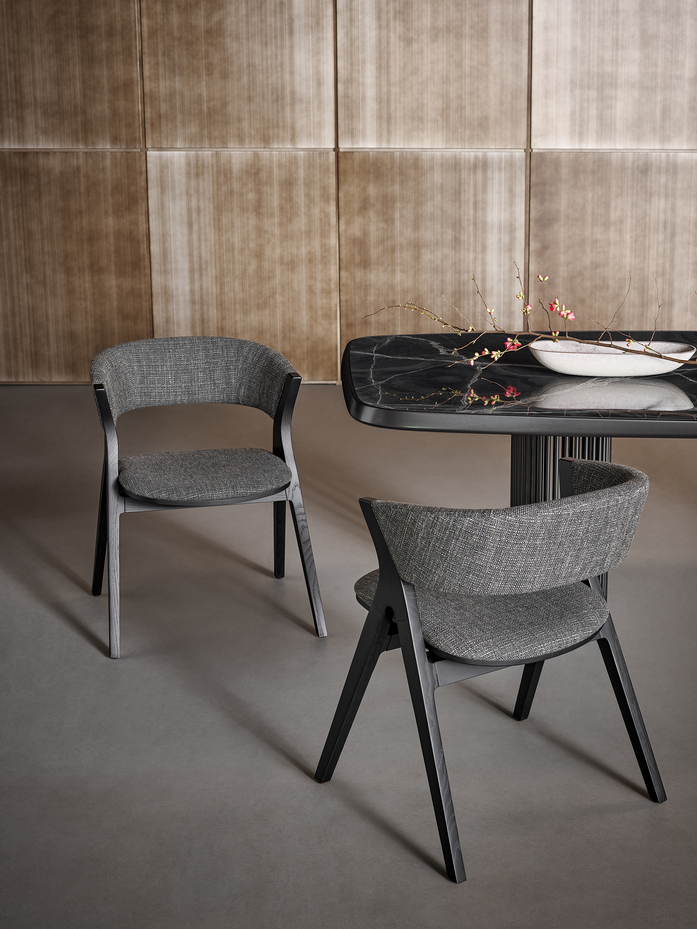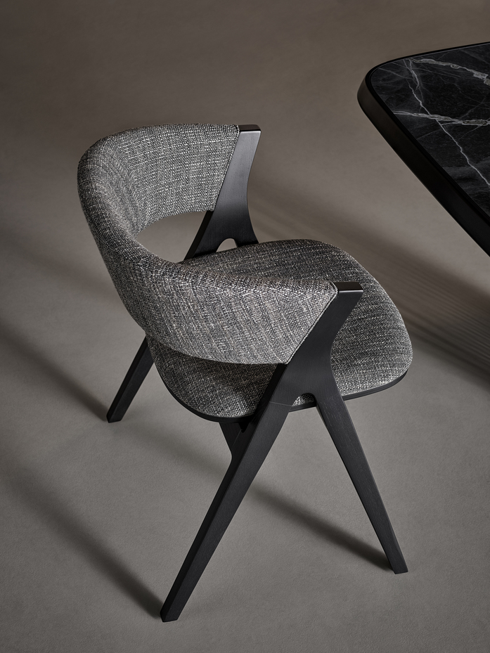 Remo (Italienisch für Ruder), ein Stuhl mit einem vielsagenden Namen, ist inspiriert von dem Bild einer Person, die in einem Boot in der Mitte eines Gewässers rudert. Die Vorder- und Hinterbeine treffen sich, wie ein Paar beweglicher Ruder. Das Design der Beine unterstreicht seine Dynamik, während die Kontinuität des Gestells die Wärme und Solidität des Massivholzes, das in verschiedenen Farbtönen erhältlich ist, hervorhebt.Dank der geschwungenen Rückenlehne bietet Remo maximalen Komfort und eignet sich perfekt um einen Tisch im Essbereich oder an einem Schreibtisch.