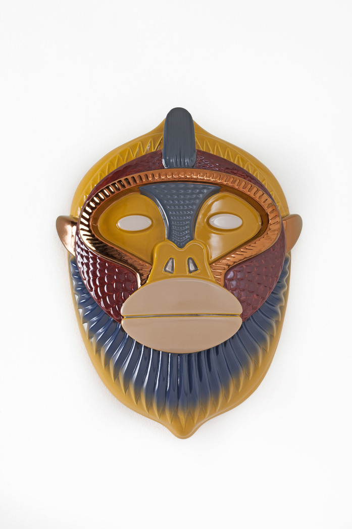 The decorative ceramic plates, illustrated with sketches and inspirations by Elena Salmistraro: edged by a light frame, the plates feature with six different themes and two different sizes.In 2018 Bosa presents the Primates masks, wall sculptures to hang as domestic totem.