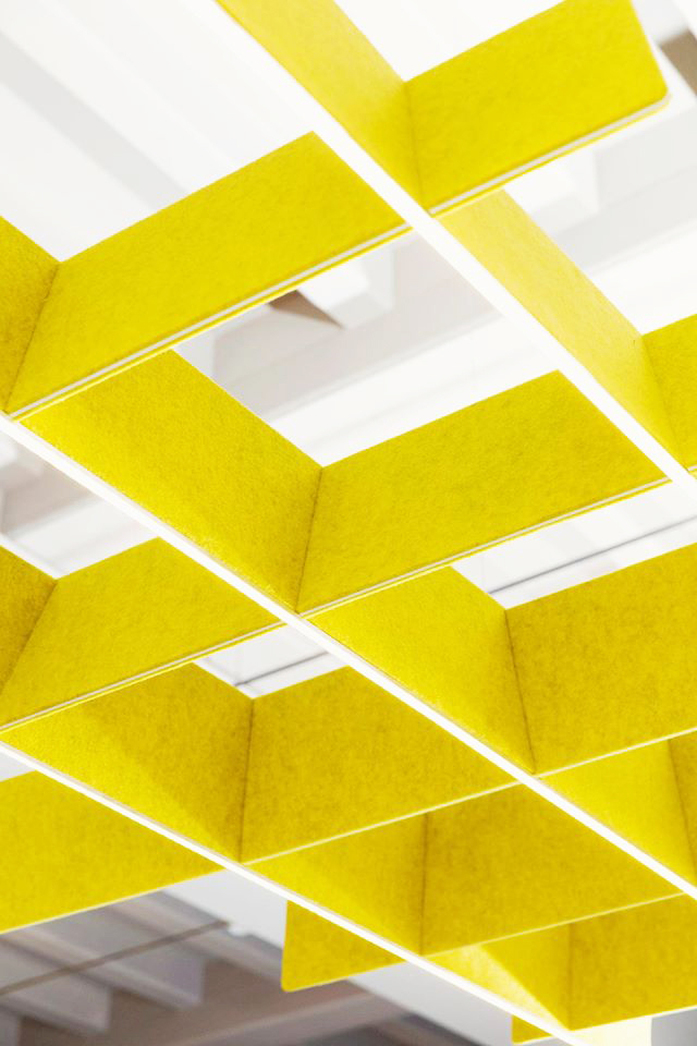 Die Liebesgeschichte zwischen Alain Gilles und BuzziSpace geht weiter. Die neueste Entwicklung des belgischen Designers ist das BuzziGrid, das sich ideal für alle Besprechungs- und Empfangsräume eignet. Das Design des BuzziGrid, das an der Decke befestigt werden kann, siedelt es zwischen der bekannten BuzziZone und dem BuzziDesk an. Wie bei BuzziZone spielt der Do-it-yourself-Aspekt auch hier eine wichtige Rolle: die Paneele können mühelos ineinandergeschoben werden, um ein einzigartiges „Grid“ zu bilden. Das Raster fungiert natürlich nicht nur als dekoratives Element, sondern hat darüber hinaus eine geräuschdämmende Wirkung. BuzziGrid ist umweltfreundlich, denn es wird aus dem Upcycling-Produkt BuzziFelt hergestellt (in verschiedenen Farben erhältlich).