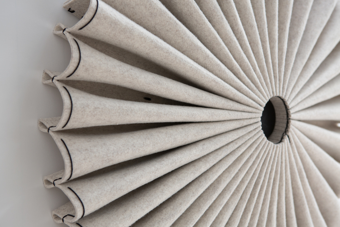 The BuzziPleat series reinterprets ancient techniques used in fashion design, like smocking and pleating, to create large-scale, yet lightweight sculptural forms, made of sound-absorbing BuzziFelt. Architectural folds maximize surface area, delivering exceptional acoustic performance.