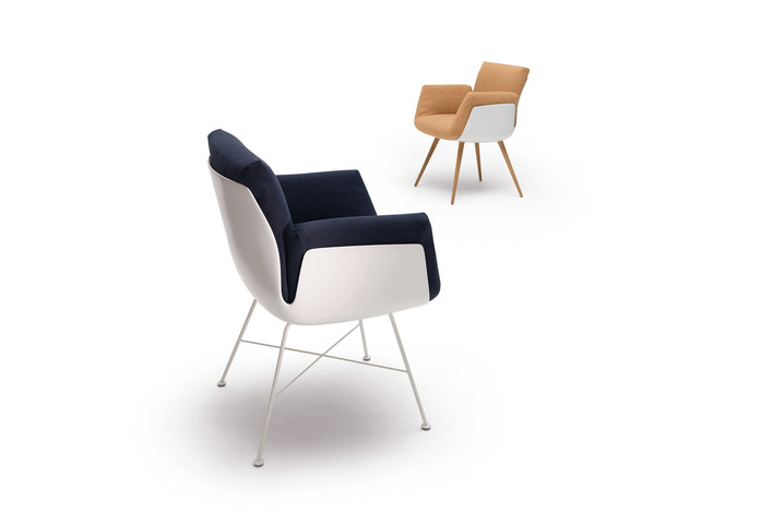 Ein formal und ergonomisch gelungener Stuhl bedarf einer möglichst genialen Idee, hohen Sitzkomforts und exzellenter Verarbeitung, allesamt Kennzeichen des neuen Entwurfs Alvo von Markus Jehs und Jürgen Laub. Mit seiner filigranen Kunststoffschale, in die ein üppiges Kissen mit unterschiedlich gefüllten Kammern als Polster für Sitz-, Rücken- und Armflächen eingelegt wird, erneuert Alvo das Bild vom Stuhl als beigestelltem Möbel: Er ist ein moderner Eyecatcher – und einzigartig bequem. Für sein signifikantes Design verarbeitet COR hochwertigen Kunststoff mit sanft schimmernden Oberflächen (durch klassische Formholzschalen hätte sich die gewünschte Elastizität nicht erzielen lassen). „Bei den seitlichen Einschnitten haben wir dann weiter experimentiert, um eine angenehme Flexibilität im Rücken zu erzielen“, berichtet Jürgen Laub. Alvo (die Assoziation an lat. alvus, Mutterschoß, liegt nahe) vermittelt Geborgenheit. Auch bei längeren Tafel- oder Diskussionsrunden soll sein Besitzer weich „gebettet“ und ganz entspannt sitzen können.