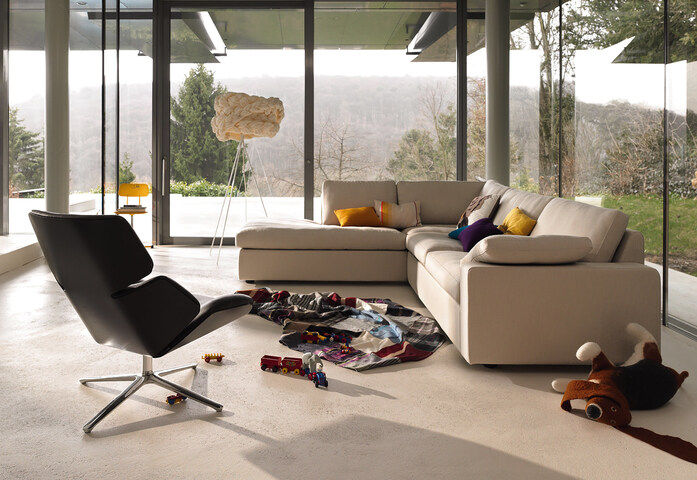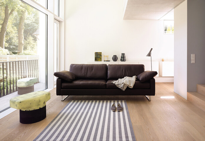 Ausgestattet mit zwei neuen Modellvarianten für noch mehr Gestaltungsvielfalt betritt der Designklassiker Conseta die Wohnbühne im neuen Jahr. Weiterentwicklungen seines genialen Baukastenprinzips, aus dem immer wieder andere Sofakombinationen entstehen, haben zu einer quadratischen Abschlussliege (140 x 140 cm) und bodenfreien Armlehnen (16 cm Breite) geführt. Rechts oder links positioniert, dient die großzügige Polsterliege als akzentuiertes Abschlusselement für frei konfigurierbare Sitzlandschaften. Ebenso schön und einladend wirkt sie als Solitärmöbel und Blickfang im Raum. Werden zwei Liegenelemente miteinander kombiniert, entstehen sogar komfortable Loungeinseln, gemütliche Seiten- und Rückenkissen vertiefen deren Kuschelfaktor. Für Liebhaber bodenfreier Sofas wurden die neuen Armlehnen entwickelt: In Kombination mit einem Möbelkorpus auf Kufen oder Füssen können jetzt Sofas mit einer fast schwebenden Optik gestaltet werden. Bezüge in Stoff und Leder der COR Kollektion.