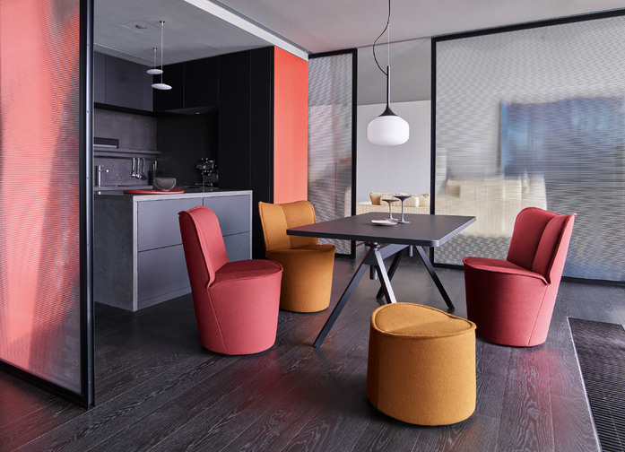 „Seerose“ bedeutet das spanische Nenufar, das für das Möbelkonzept Nenou Pate stand. Und so natürlich wie Seerosen in einem Teich gruppieren sich denn auch dessen blattförmigen Polster-Elemente zu immer wieder neuen Topographien im offenen Raum. Auch im Detail zitieren die von Designer Jörg Boner und COR gemeinsam entworfenen Sessel, Hocker und Poufs Blätter – mit umlaufenden Fahnen und mittigen Vertiefungen, die nicht nur ihre Besitzer, sondern auch die formschönen Tabletts aus Holz und Stein so bequem wie passgerecht halten.