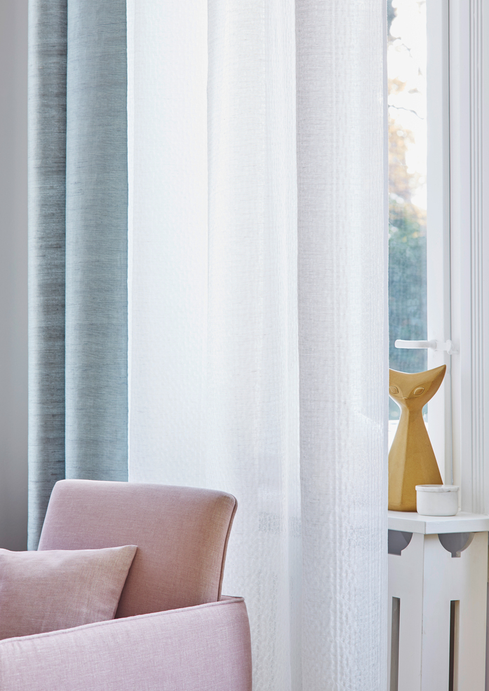 Dichter Vorhangstoff; Seidenstoff mit natürlichem Charakter und mattem, edlem Glanz. Der Changeant-Effekt der unterschiedlichen Kett- und Schussfarben verleiht dem Artikel eine zusätzliche Tiefe und Hochwertigkeit. Ein breites Spektrum an warmen, erdigen und pastellfarbenen Tönen in feinen Nuancierungen runden das Bild ab.