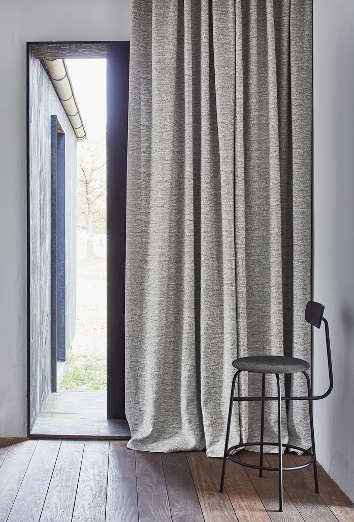 Dichter Vorhangstoff; Erde pur? Leinen pur. Die unregelmässige Jacquardstruktur wird durch die Verwendung von unterschiedlichen Kett- und Schussfarben zusätzlich betont. Die Materialität und die Farbigkeit unterstützen den authentischen und prägnanten Ausdruck dieses Artikels.