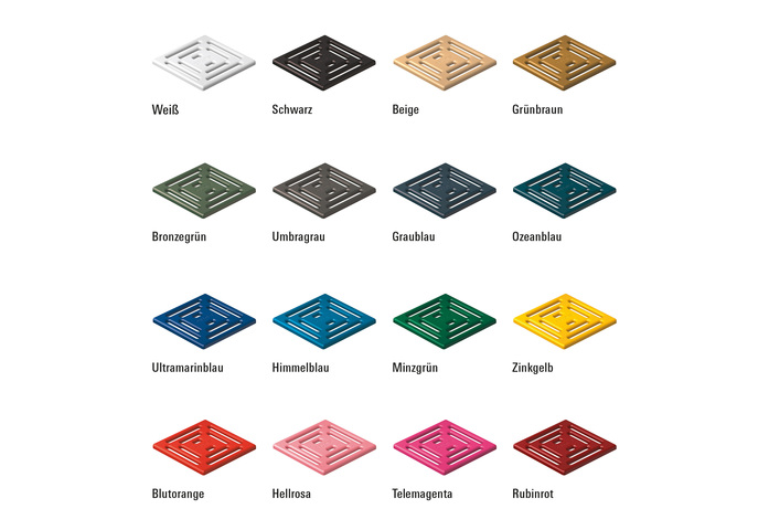 DESIGN Dallmer 2021: COLOURCOLLECTION21.10.2021Mit den farbigen Rosten der "ColourCollection" können GestalterInnen ihrer Kreativität bei der Badplanung freien Lauf lassen.