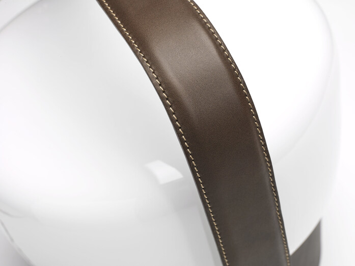 Facella ist inspiriert von tragbaren Laternen und durch ihre reduzierte und grafische Form in die heutige Zeit übersetzt. Der Schirm ist aus mundgeblasenem Opal Glas. Die Einfassung und der Tragbügel sind aus hochwertigem Dickleder mit deutscher Herkunft gefertigt. Bei der Verarbeitung finden traditionelle Techniken ihren Einsatz. Alle Verbindungen sind handgenäht.