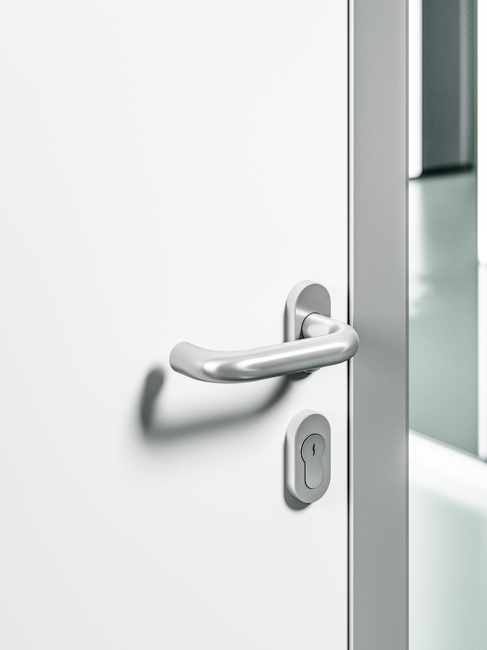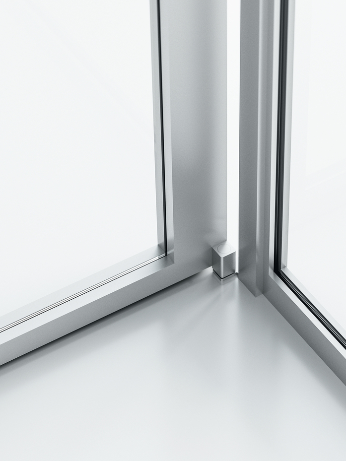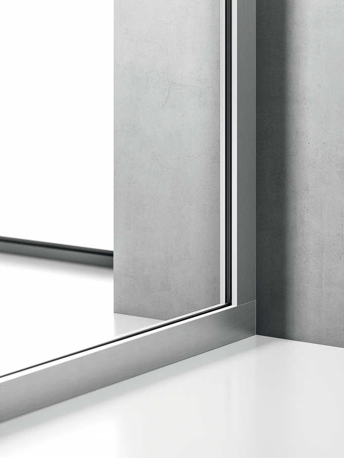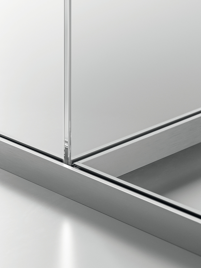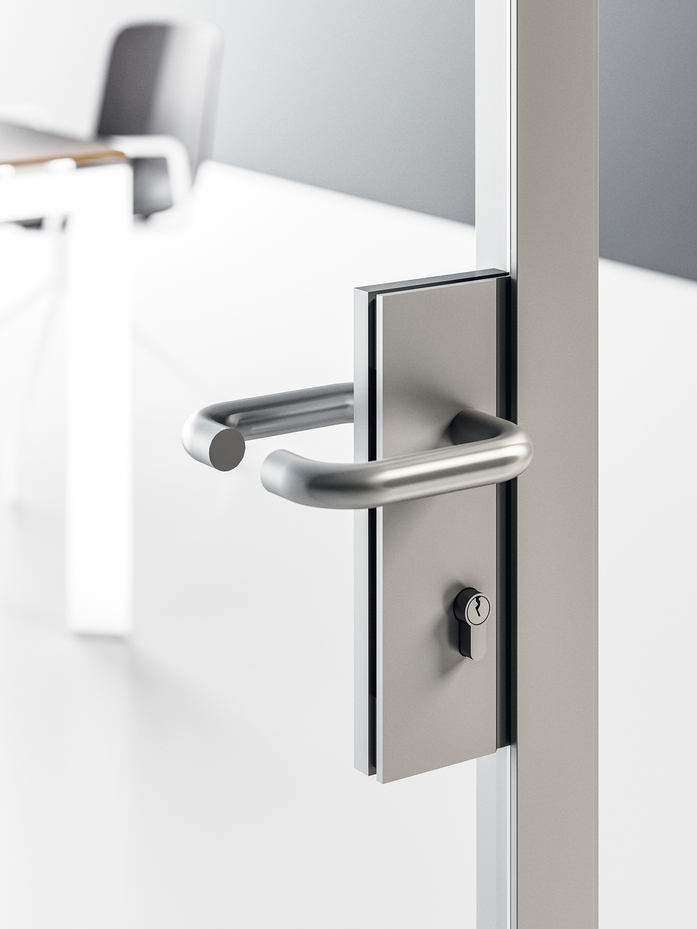 The DV602 series, a 3 cm thick single-glazed partition wall, emphasizes simplicity and technicality. The main features are: outer aluminium profiles, laminated glass sheets, melamine or veneer wooden panels, sliding or hinged doors and various modules.