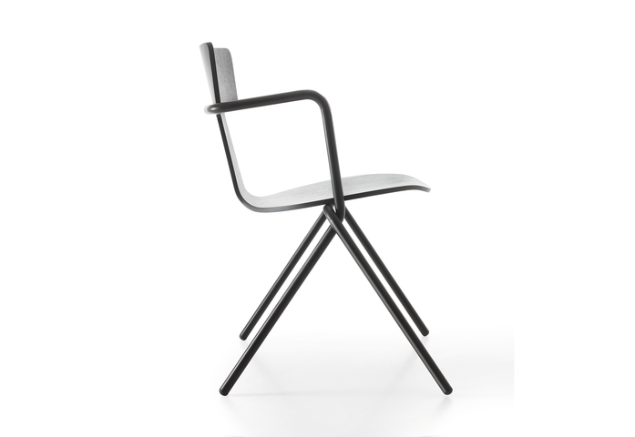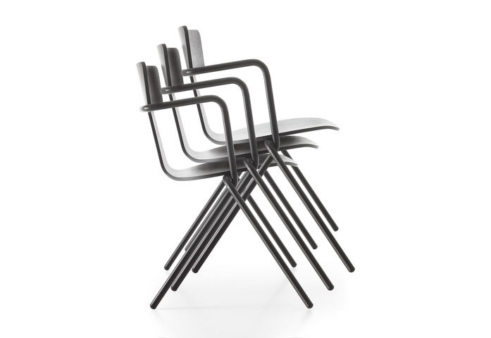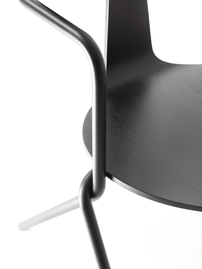 The new chair collection designed by Enzo Berti, Paro, is conceived from the start as a design bet based on the essentiality of a few constructive elements designed to accomplish maximum simplification from the point of view of production and assembly. The aesthetic result is the consequence. In fact, there are three elements that make up Paro, jointed through just two welding’s: the intertwining of two metal tubulars, one as structural support and the other that becomes an armrest and support for the third element: the sinuous curved wooden shell. The result is a structure that stands out for its extreme lightness, a clean and slim design for a chair that offers a comfortable and iconic T-shaped back. Paro is designed for public areas, but also for the home and office, and is easily stackable thanks to its light weight and reduced overall dimensions. Available in three different finishes for a cleverly customizable final effect: the shell is completely available in wood, padded on the back and the sitting or entirely padded in the front. Paddings are available in leather and fabric.