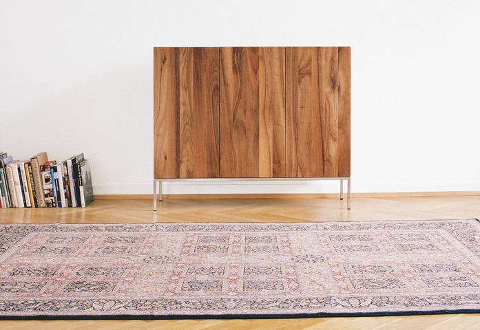 Die Anrichte FARIBA besticht besonders durch die vertikale Massivholzmaserung. FARIBA betont elegant die Materialkombination von massivem Holz und einem nahtlos gefertigten Edelstahlrahmen. Eine durchgehende Fase entlang der oberen Innenkante aller drei Türen dient als Griff. FARIBA ist auch mit zwei Türen erhältlich sowie mit einem Gestell aus pulverbeschichtetem Stahl.