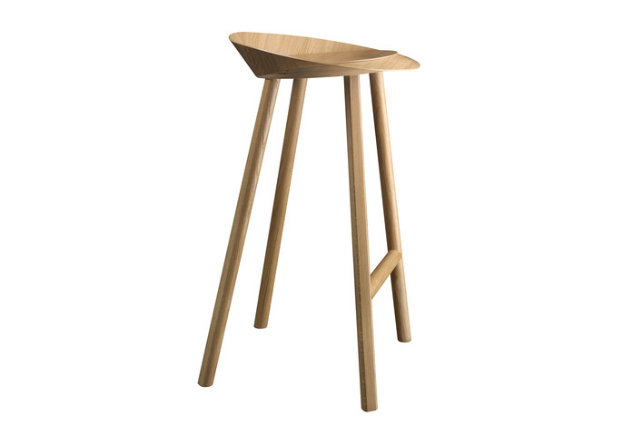 er Barhocker JEAN ist klar als eine Weiterentwicklung der dynamischen Stuhlfamilie HOUDINI zu erkennen. JEAN besteht aus einer Sitzfläche mit umlaufender Krempe, die beim Sitzen für besonderen Komfort und Halt sorgt. Zwischen den vorderen Beinen läuft eine Verstrebung mit eingelassener Metallschiene, die als Fußstütze dient und dem Barhocker Stabilität verleiht. Der Hocker JEAN, gefertigt aus Sperrholz mit lackiertem Eichenfurnier, ist in zwei verschiedenen Höhen sowie mit und ohne Rückenlehne erhältlich und eignet sich sowohl für den Gebrauch im öffentlichen Raum als auch im privaten Wohnbereich, z.B. am Küchentresen. Eine Polsterung der Sitzfläche ist möglich.