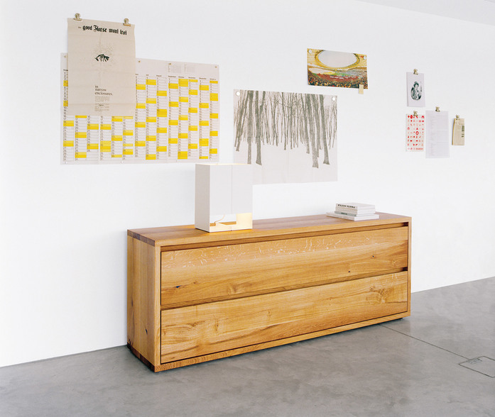 Mit der ihr innewohnenden skulpturalen Beschaffenheit und den akkuraten Kantungen ist die Leuchte SEAM TWO ein ikonisches Erkennungszeichen für e15. Die Leuchte zeichnet sich durch eine einfache, doch raffinierte Bauweise sowie durch ausgewogene Proportionen aus und folgt damit Mark Holmes' Prinzipien der reduzierten Komponenten, die den Fokus auf die Einzelelemente der Leuchte selbst legen. Erhältlich in zwei Größen ist SEAM TWO aus lasergeschnittenen, fest verbundenen Bauteilen aus gekantetem Aluminiumblech gefertigt. Als Teil der Serie E15 SELECTED ist SEAM TWO ebenso erhältlich in poliertem Kupfer, was die edle Materialität der Leuchte besonders hervorhebt.