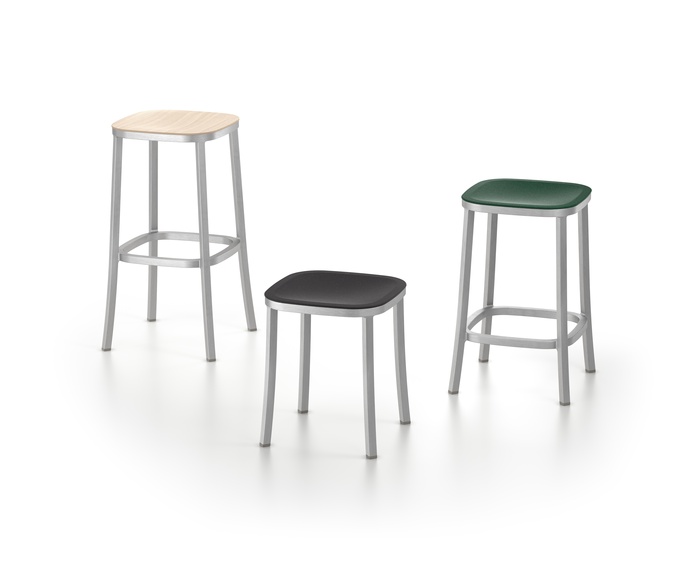 Emeco benutzt weiterhin recycelte und umweltfreundliche Materialien, um langlebige Produkte zu produzieren. Die “1-inch” Rahmen sind aus recyceltem Aluminium gefertigt. Sitze und Rückenlehnen werden in verschiedenen Materialien für eine Vielzahl von Anwendungen angeboten: