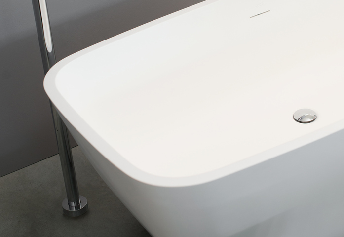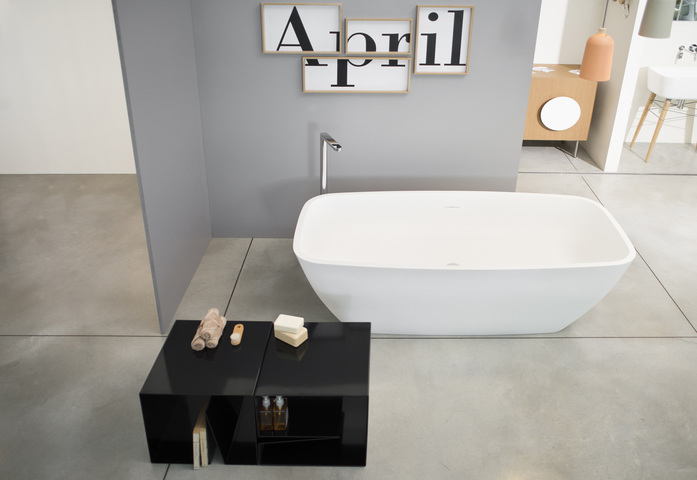 Comfortable even if small, this bathtub is perfect for tiny spaces. The new April bathtub is made in LivingTec® a compact, not porous material created to satisfy the highest standard of quality, technology and ambient. Its composition is based on hydrate of alumina and a small percentage of resins polyester acrylic, it’s pleasant to the touch and in case of scratches you can re-establish the compact surface using abrasive sponge or other abrasive products. April is complete of swivel sifon.
