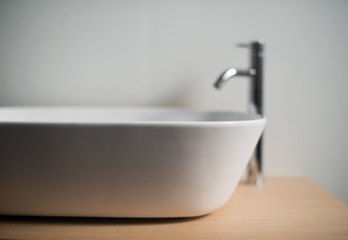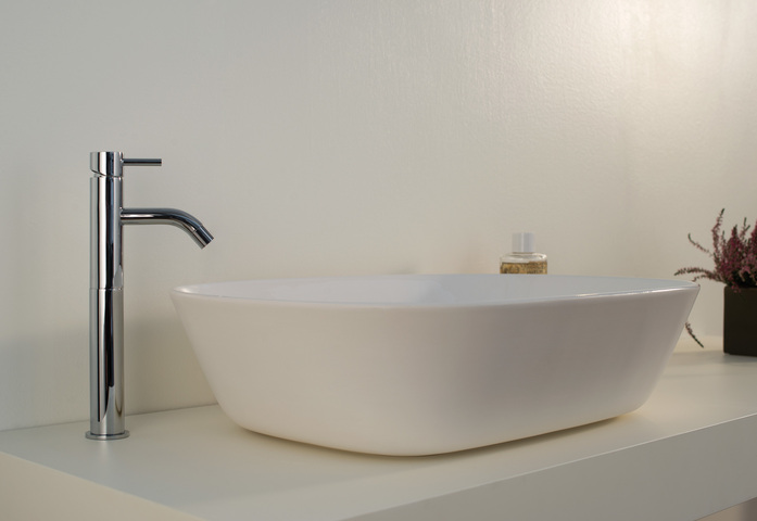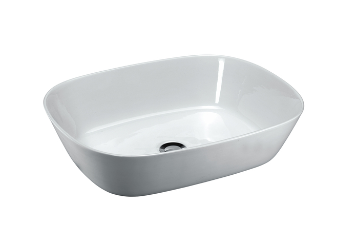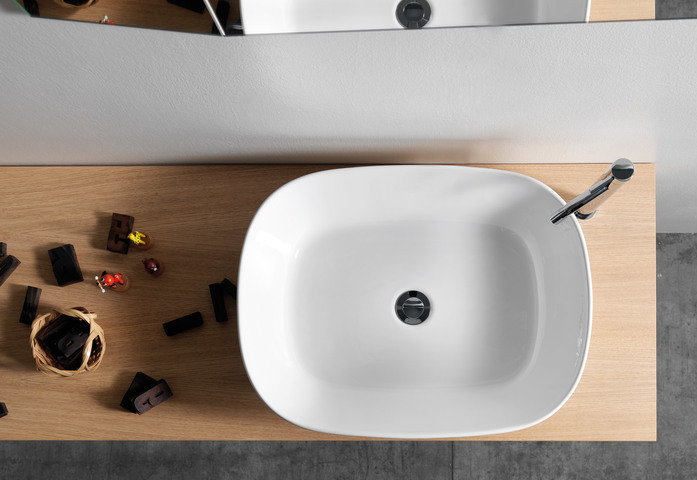 Countertop basin in glazed ceramic with a matt finish outside and polished finish inside.