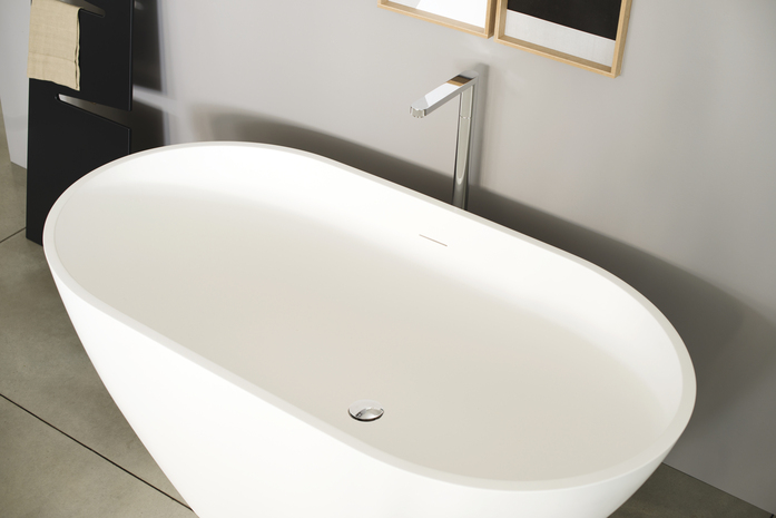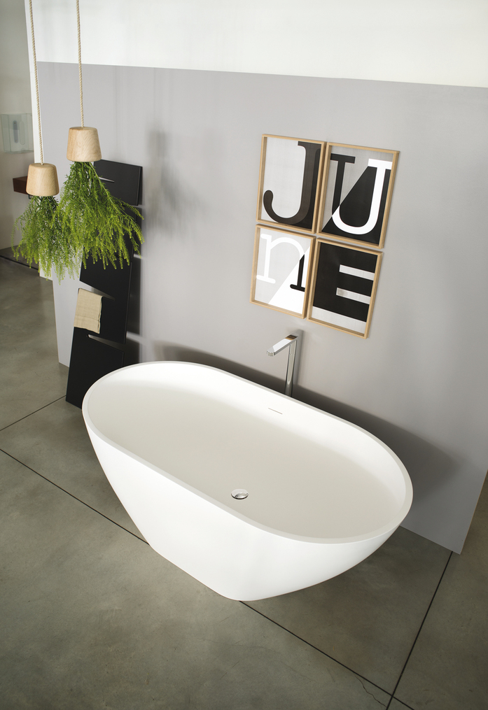 Small yet very capacious bathtub designed for tiny spaces. The new June bathtub is made in LivingTec® a compact, not porous material created to satisfy the highest standard of quality, technology and ambient. Its composition is based on hydrate of alumina and a small percentage of resins polyester acrylic, it’s pleasant to the touch and in case of scratches you can re-establish the compact surface using abrasive sponge or other abrasive products. June is complete of swivel sifon.