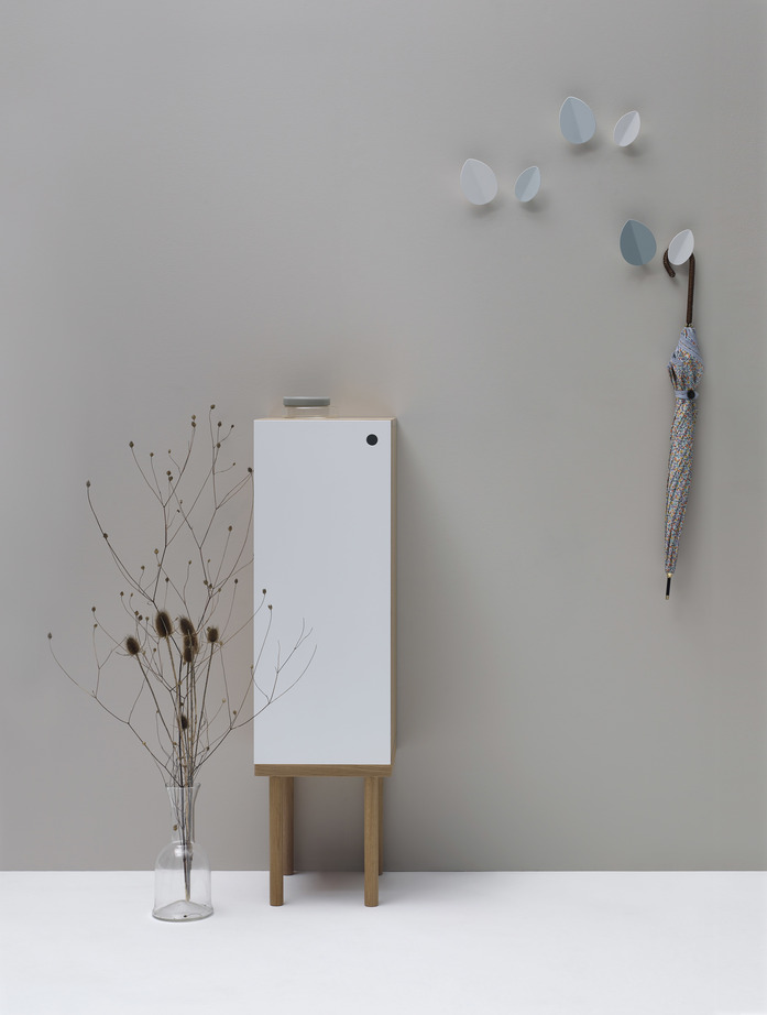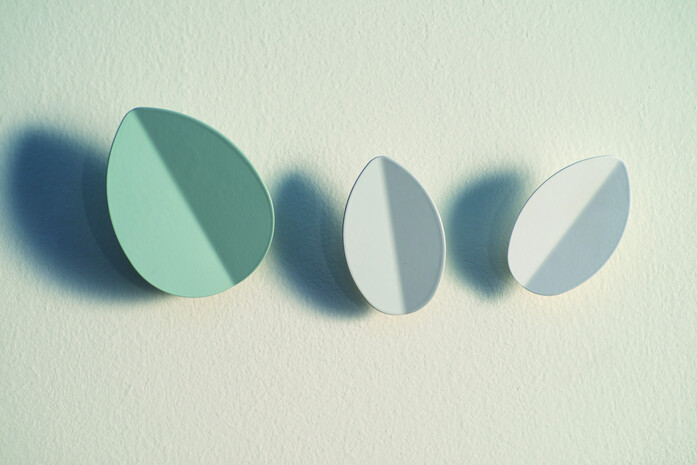 Leaf is a series of coat-hooks inspired by the movement of leaves of a tree. Clothes or other objects can be hung from them or clamped behind them. Leaf are available in two different sizes, white or coloured version.