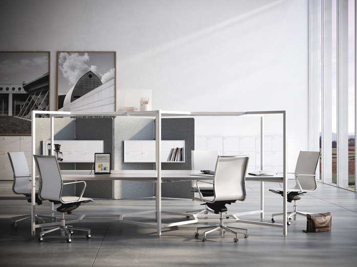 Hub gives us free rein to personalise our workspace. The ultimate modular system, whose perfect geometric structure was developed so that its frame can be used to form independent workstations or multiple arrangements. Hub is sculptural and contemporary; it offers natural finishes for the top plus the radical solution of ISB chipboard. It also embraces the fashion world through a tweed decorative motif. Hub uses fabrics in intense colours, while the black or white frame contributes to cool or elegant locations and facilitates bold combinations.