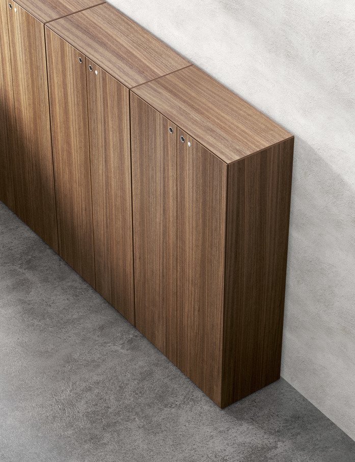 Fascinating. The constantly-evolving Multipliceo programme perfectly expresses the Fantoni philosophy, seeking to respond to a wide range of requirements with an essential design. The storage cabinets feature a version with an external wood veneer, conveying natural warmth and a timeless design.