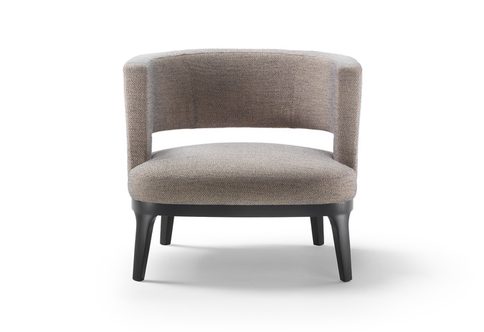 Dieser kleine Sessel, mit Gestell und Beinen aus Massivholz und ovalem Polstersitz, zeichnet sich durch seine besondere, halbrunde Rückenlehne aus, die nahe den Armlehnen am Sitz befestigt ist. Dieses Detail verleiht dem Sessel Astrid seine raffinierte Note und seine bemerkenswerte Bequemlichkeit. Der Sessel Astrid kann mit gleicher Eleganz mit allen Stoffen und Ledersorten der Kollektion Flexform Mood bezogen werden und findet leicht seinen Platz in jedem Raum, vom Living bis hin zum Schlafzimmer.
