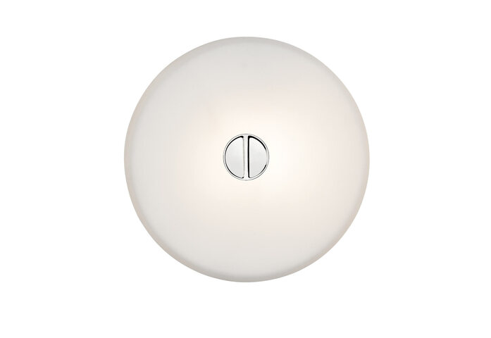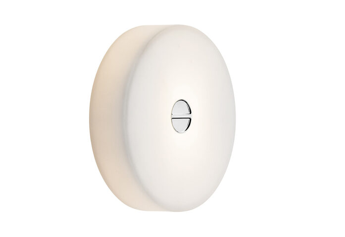 Wandleuchte für direktes/indirektes/teilweise diffuses Licht. Die Wandhalterung ist aus geschnittenem, gebogenem und glänzend weiß pulverlackiertem Stahl. Diffusor aus pulverlackiertem Schnittmetall. Die beiden Fassungshalterungen sind aus weißem, spritzgepreßtem Nylon.
