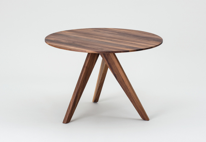 Mit seinen gekreuzten Beinen ist FLAT eine Augenweide, und man fragt sich, wie er statisch funktioniert. Und doch ist FLAT ausgesprochen stabil und standfest. Als Massivholztisch interessant für Hotel- und Objekteinrichtung.