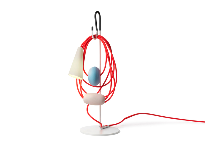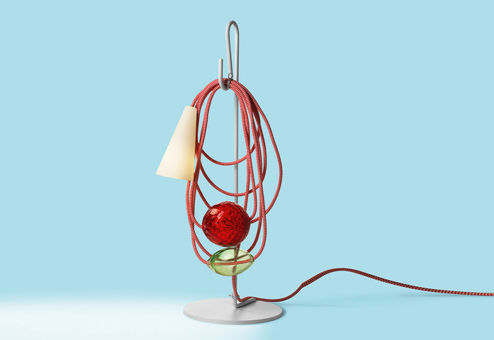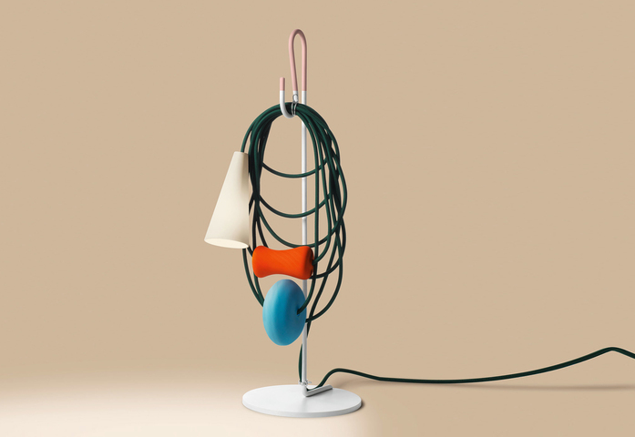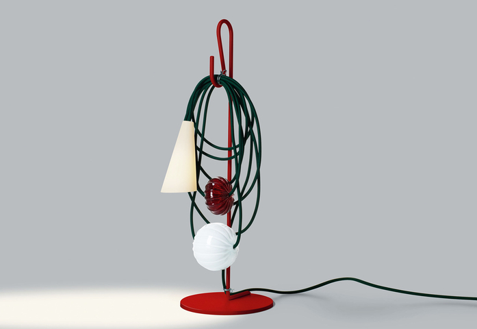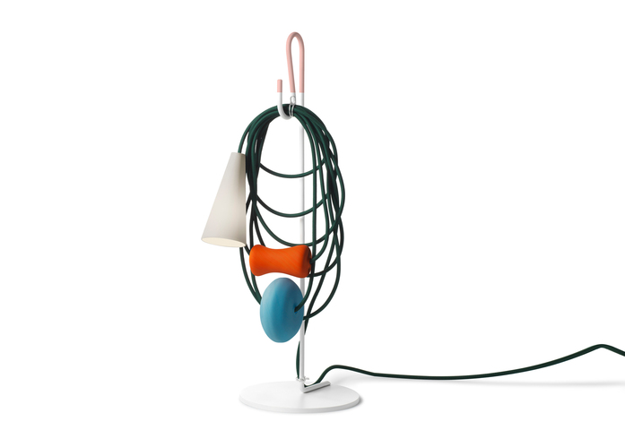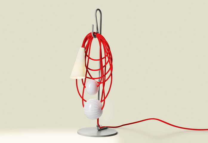 Filo entstand aus dem Wunsch, die einzelnen Bestandteile einer Leuchte – Leuchtmittel, Dekoration und Kabel – gezielt in Szene zu setzen, ihre technischen und ästhetischen Eigenschaften aufzuzeigen, ihre Grammatik und ihre Syntax zu vereinfachen. Ihr schlichtes Design ergab sich in Folge aus der Entscheidung, der Dekoration eine grundlegende Rolle zukommen zu lassen und Elemente einzubinden, die traditionell nicht vorgesehen sind. Das Kabel steht damit in direktem Dialog mit den Elementen aus Glas und dem leuchtenden Schirm. Der bunte Rollentausch schenkt dem Design eine spielerische Rhythmik. So wie der Strom durch das Kabel läuft und es der Leuchte ermöglicht, ihre Funktion zu erfüllen, so folgen einander entlang des Kabels auch Kugeln und Kolben aus Glas, die auf diese Weise das Urbild einer Halskette entstehen lassen – ergänzt noch um einen kegelförmigen Porzellankörper, der das Licht auf das Kabel und die Glaskugeln lenkt und somit wie ein weiterer Anhänger wirkt. Die bunte Vielfalt an farblichen Varianten gibt der Leuchte viele Gesichter. Die Spanne reicht von Aquarelltönen und transparentem Murano-Glas über bunte Farben im Ethnostyle bis hin zu den Neonfarben einer urbanen Moderne – mit dem Ergebnis, dass sich die Leuchte perfekt in unterschiedlichste Umgebungen fügt. Filo ist in der Ausführung als Tisch-, Steh-, Decken- und Hängeleuchte erhältlich. Die beiden letzteren gehen dabei in ihrem strukturell-analytischen Ansatz und dem Spiel mit den Rollen der einzelnen Elemente noch einen Schritt weiter und beziehen auch die Steckdosen mit ein, die auf diese Weise ebenfalls Teil des Gesamtwerks werden.