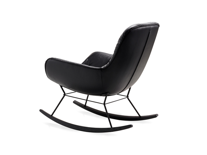 Das Schaukeln auf einem Schaukelstuhl trägt nachweislich zu guter Laune bei. Ähnlich wie beim Leya Swing Seat – nur auf Kufen, mobiler und, genau charakteristisch für die Modelle der Leya Familie, herrlich komfortabel. Besonders für die Entwicklung der richtigen Neigung der Kufen für einen perfekten und sicheren Schwung, haben die Designer Birgit Hoffmann und Christoph Kahleyss sich viel Zeit gelassen. Auf den Kufen thront die gemütliche Sitzschale des Leya Lounge Chair.