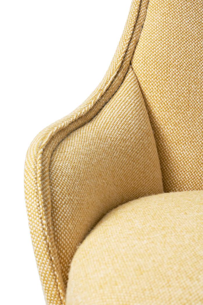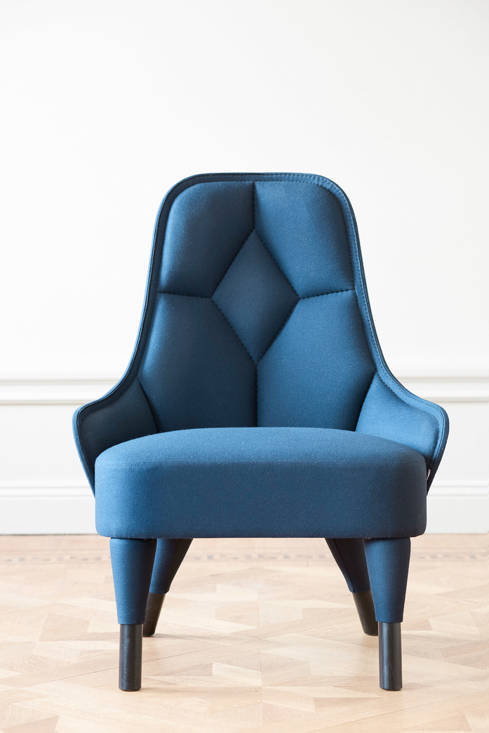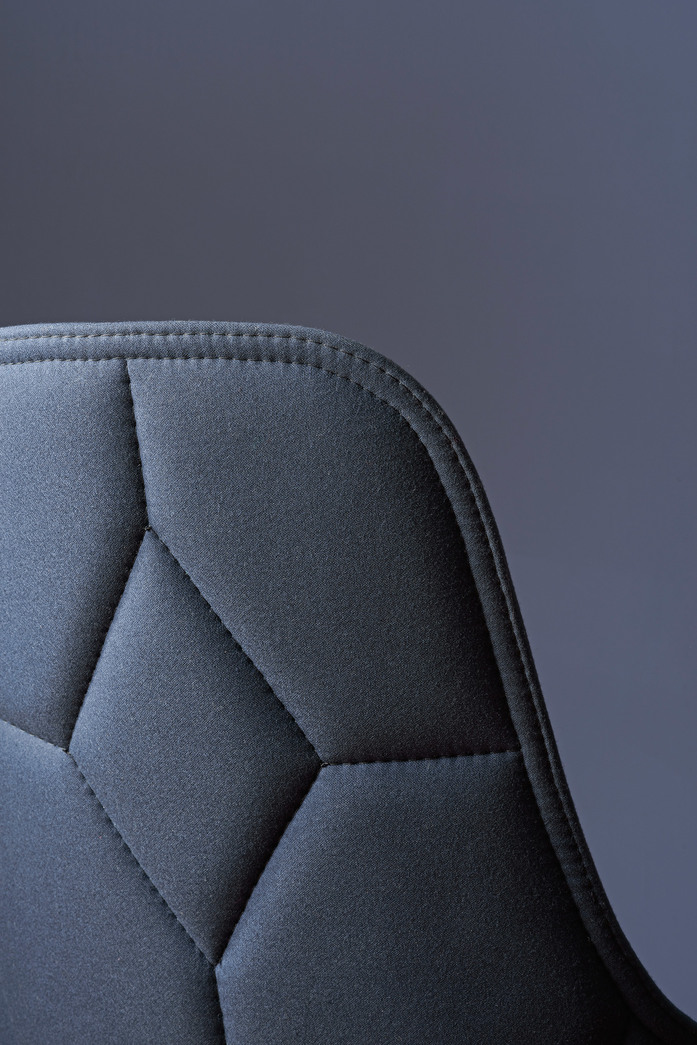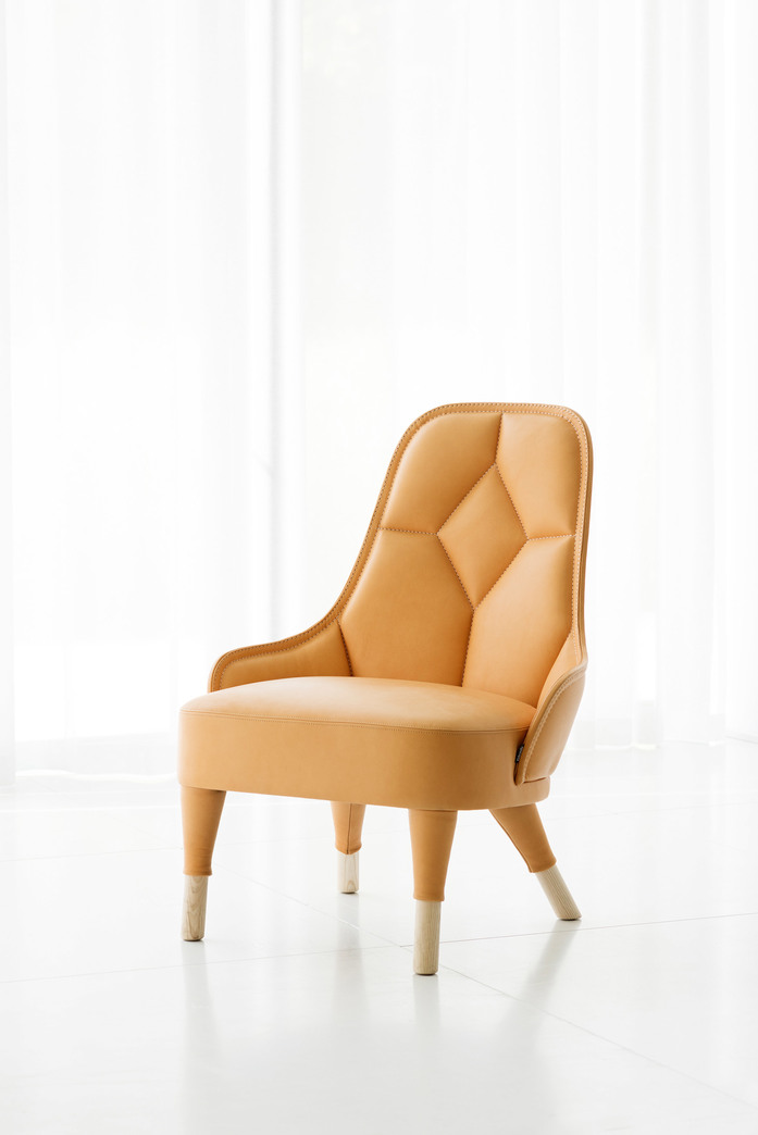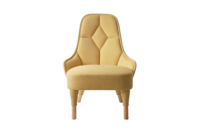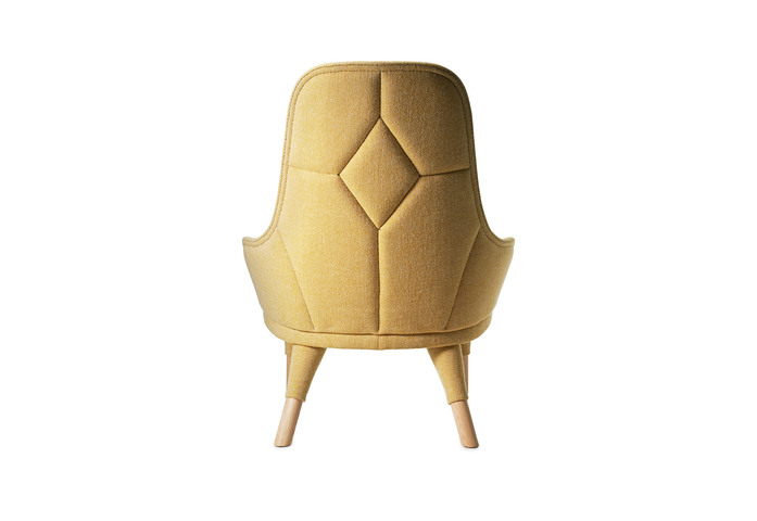 Easy chair upholstered in fabric or leather. Stitched through pattern in the back. Thread in black, orange, green, brown, dark grey, light grey or offwhite. We recommend fabrics with stretch and wollen fibers. Legs in natural ash. Plastic glides. Approved by Möbelfakta – quality, environment and social responsibility, certificate no. 0420141020