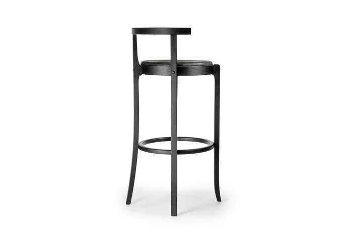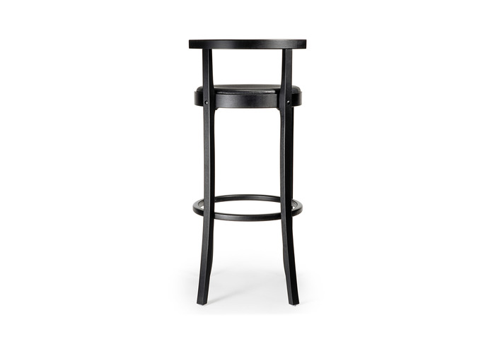 Bar stool in natural birch, stain or lacquer. Veneer seat. Seat covered in fabric or leather. Two seat heights.