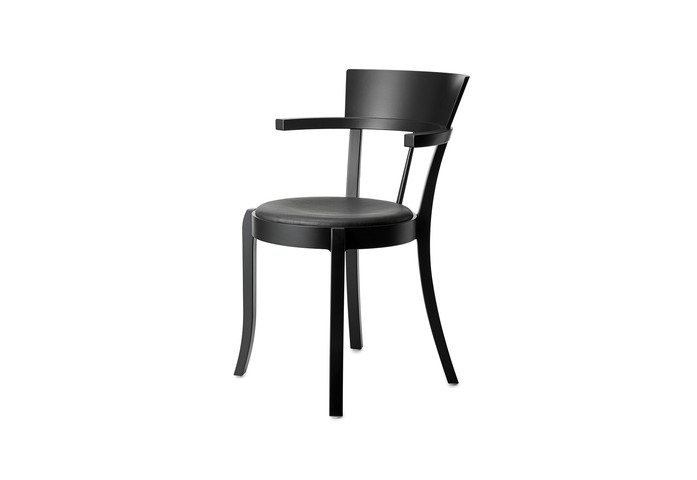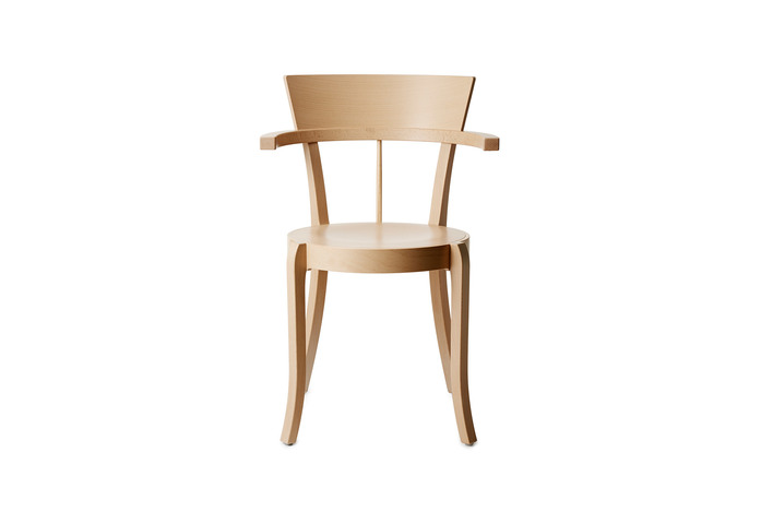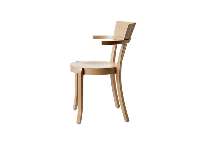 Armchair in natural beech, stain or lacquer. Veneer seat or seat covered in fabric or leather. Stackable and suspendable. Available for sound-absorbent material under the seat. Conforms to Swan labelling criteria.