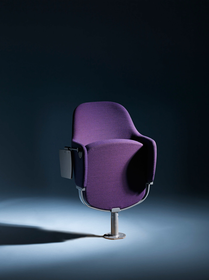 Auditory theatre chair with folding seat. Upholstered seat and back in fabric or leather. Tested by SP Technical Research Institute of Sweden.