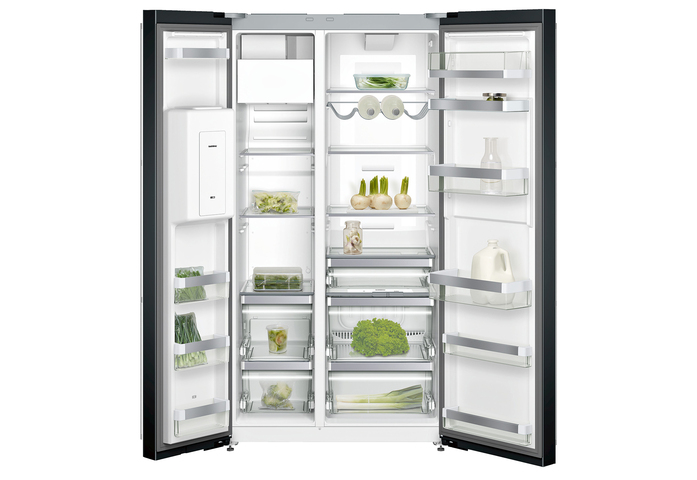 Mit insgesamt 517 Litern bietet das 178 cm hohe und 91,4 cm breite freistehende Gerät das grösste Nutzvolumen innerhalb der neuen Serie. Der grosszügige Side-by-Side ist mit drei Klimazonen ausgestattet, inklusive einer 19 Liter umfassenden integrierten Frischkühlzone, in der eine Temperatur nahe 0 °C frische Lebensmittel besonders lange haltbar macht. Der 178 Liter umfassende 4 Sterne-Gefrierraum bietet No-Frost-Technik und Schnell-Gefrieren. Mit einzeln entnehmbaren Schubladen und Abstellflächen besteht in ihrem Innenraum viel Flexibilität bei der Lagerung von grossem Gefriergut. Transparente Materialien und ein blendfreies LED-Lichtkonzept garantieren optimale Einsicht. Dank voll ausziehbarer Tablare und Schubladen ist ein bequemer Zugriff jederzeit möglich. Wie bei den übrigen Geräten der Serie 200 bietet der Kühlraum ein Stufen-Tablar mit integrierten Vorrichtungen zur Lagerung von Gastronorm-Behältern sowie zur platzsparenden Aufbewahrung von unterschiedlich hohem Kühlgut. Die hygienischen Gastronorm-Behälter aus Edelstahl in verschiedenen, genormten Formaten sind die Basis des Kochgeschirrs in der professionellen Küche. Durch ihre innovative Integration im Kühlschrank ermöglichen sie erstmalig den effizienten Ablauf von der Aufbewahrung und Vorbereitung der Speisen über deren Frischhaltung und Zubereitung bis hin zum Servieren bei Tisch. Mit innovativen Lösungen erfüllt die Vario Kälte-Serie 200 alle Ansprüche und ist ein perfekter Einstieg in die Gaggenau Welt des professionellen Kühlens. Der freistehende Side-by-Side bietet mit seiner hochwertigen Vollverkleidung in Edelstahl oder Aluminium zudem die Möglichkeit, einen bewussten und stilvollen Akzent zu setzen.