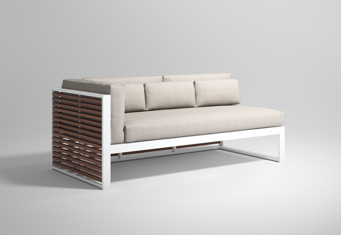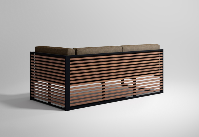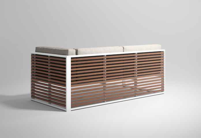 DNA TEAKHOLZ ist aus Teakholzlamellen gefertigt, so etwas wie der Gegenpol zu den fürdie gesamte Kollektion so charakteristischen, flachgewalzten Aluminiumprofilen, was aberkeineswegs ein Abweichen von der ursprünglichen Inspiration bedeutet, die hinter DNA steht. Das Konzept der Kollektion basiert auf speziellen Licht-Schatten-Effekten, die an die typisch mediterranen Fensterläden erinnern und an die Arbeiten orientalischer Architekten, für die Holzlamellen und Bambusrohr verwendet werden. Die Qualität und natürliche Dauerhaftigkeit des Teakholzes ist der perfekte Kontrast zum Aluminium, dem Material, das GANDIABLASCO seit vielen Jahren bevorzugt einsetzt. Seine kastanienfarbenen Töne kombinieren hervorragend mit dem eloxierten Aluminium und den anderen pulverbeschichteten Farben, in denen die Artikel dieser Kollektion erhältlich sind.