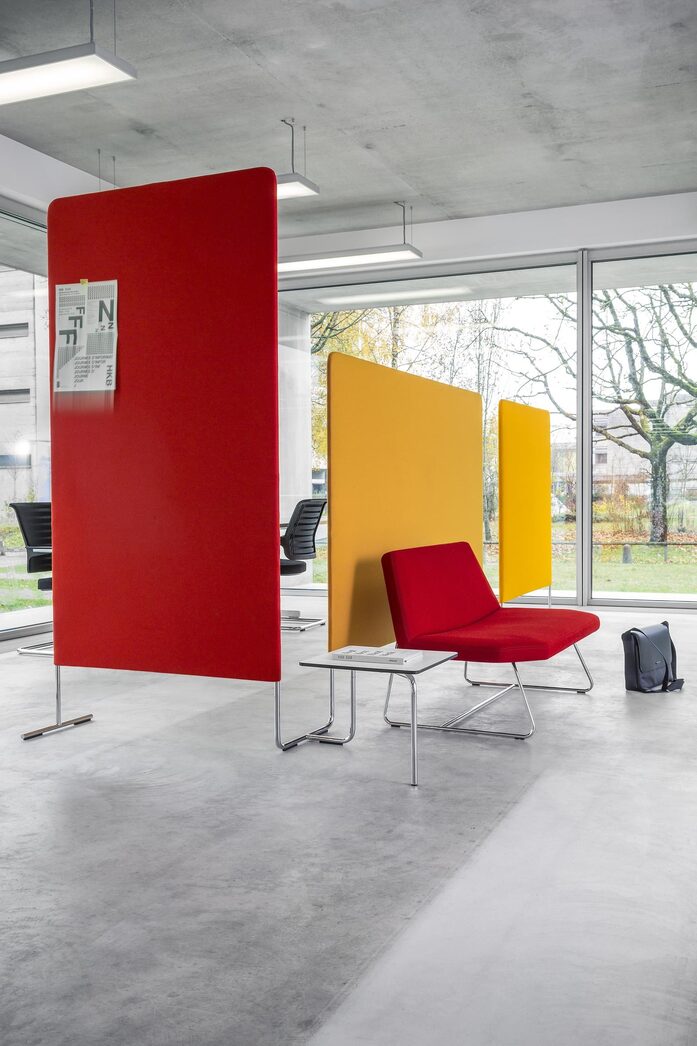 Genau wie Otto wirkt auch das Linked-Programm erfrischend neu und freundlich. Es besteht aus einer Reihe von Einzelkomponenten, die auf unterschiedliche Art und Weise zusammengesteckt werden können: verschiedene Fusselemente aus Stahlrohr, mit Stoff bezogene Wandelemente in vier Grössen sowie ein Tischchen und ein Garderobenständer. Die Wandelemente sind wahlweise mit einer schalldämmenden Weichfaserplatte oder mit hochwirksamen Akustikpaneelen gefüllt; auch der Stoffbezug trägt zur Schalldämmung bei. Lassen Sie sich inspirieren!
