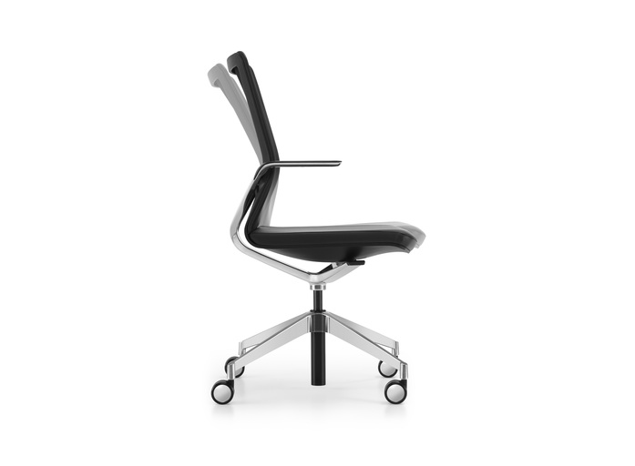 Linq ist ein eleganter und universeller Drehstuhl für repräsentative Konferenz- und Teamarbeitsbereiche. Das besondere Designmerkmal ist ein integrativer Aluminiumträger, welcher als Bindeglied zwischen Standfuss und Sitzschale fungiert und an seinen Enden die Armlehnen ausbildet. Die Sitzschale ist in dem Aluminiumträger beweglich gelagert und erlaubt bequemes Zurücklehnen: ein entscheidender Mehrwert an Komfort – speziell für langes Sitzen in Konferenzen.