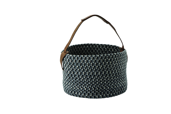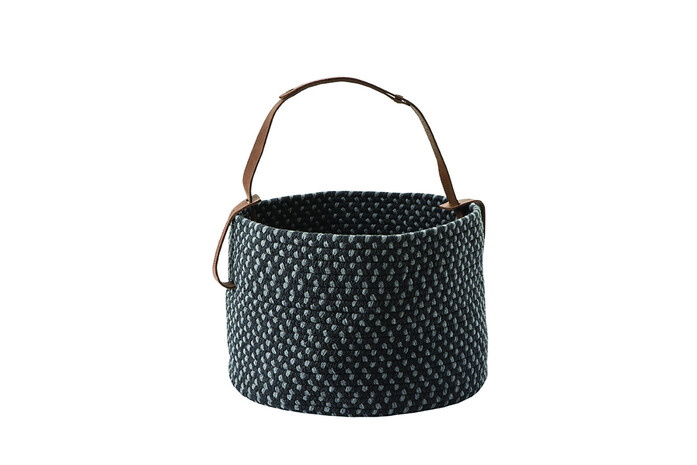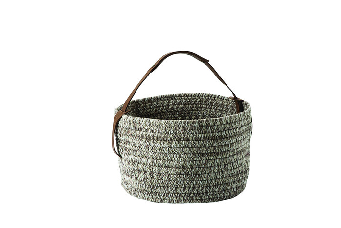 Auch unser gewebter Korb veredelt auf ähnliche Art und Weise schlichte Konzepte. Er verfügt über ein rustikales Finish und eignet sich ideal dafür, kleinere Gegenstände sicher und stets griffbereit aufzubewahren. Genau wie unsere Teppiche werden auch unsere Körbe sorgfältig von Hand gefertigt und verfügen über einen mit viel Liebe zum Detail handgenähten Griff aus Naturleder.